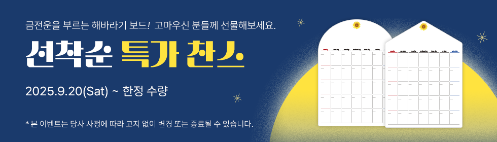 - 일부 특가 상품의 경우, 인수 후에는 제품 하자나 오배송의 경우를 제외한 고객님의 단순변심에 의한 교환, 반품이 불가능할 수 있사오니, 각 상품의 상품상세정보를 꼭 참조하십시오.